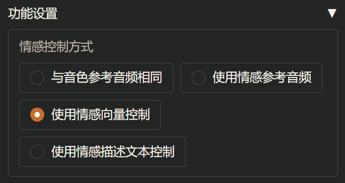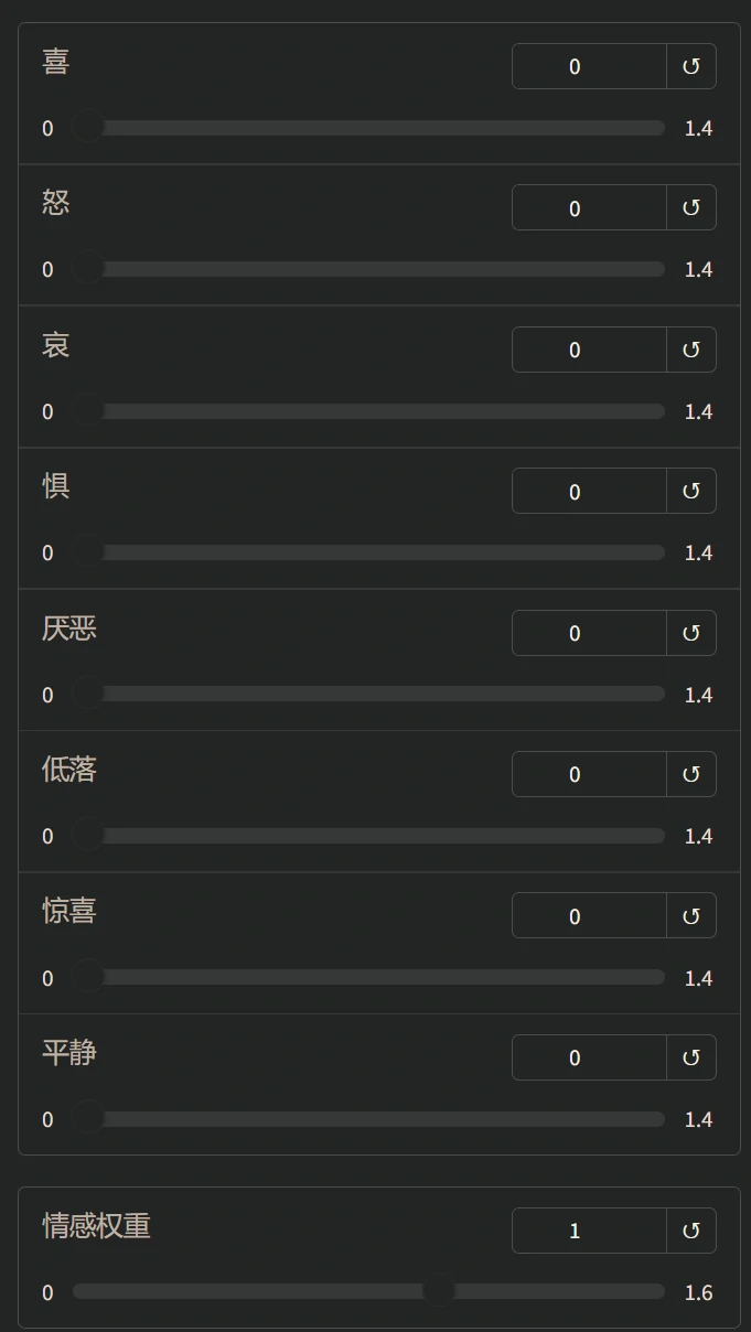 多种模式,可以文本描述情感、可以使用一个情感参考音频、也可以调节各情绪参数