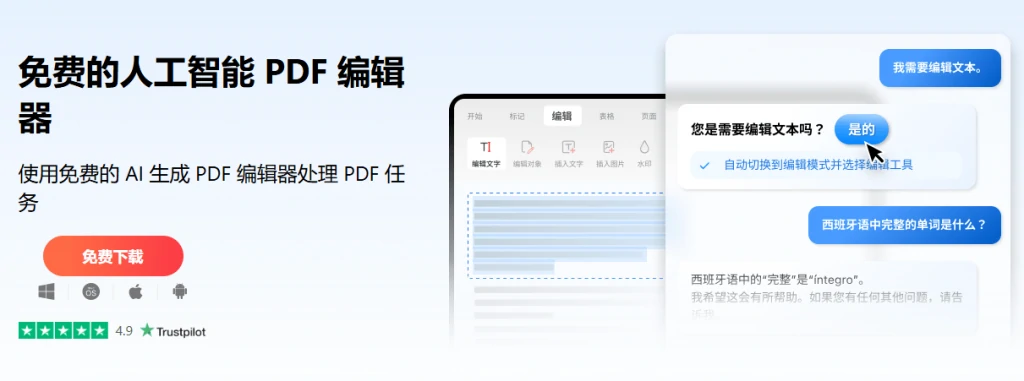 - 完全免费,无附加条件,里面的Ai功能也是免费用的